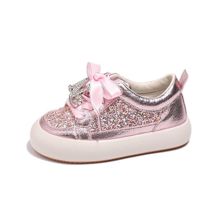 Детская спортивная обувь. Весенне-осенний новый стиль. Повседневная обувь для маленьких девочек со стразами и блестками. Мягкая подошва, блестящие модные туфли в западном стиле. 36 розовый