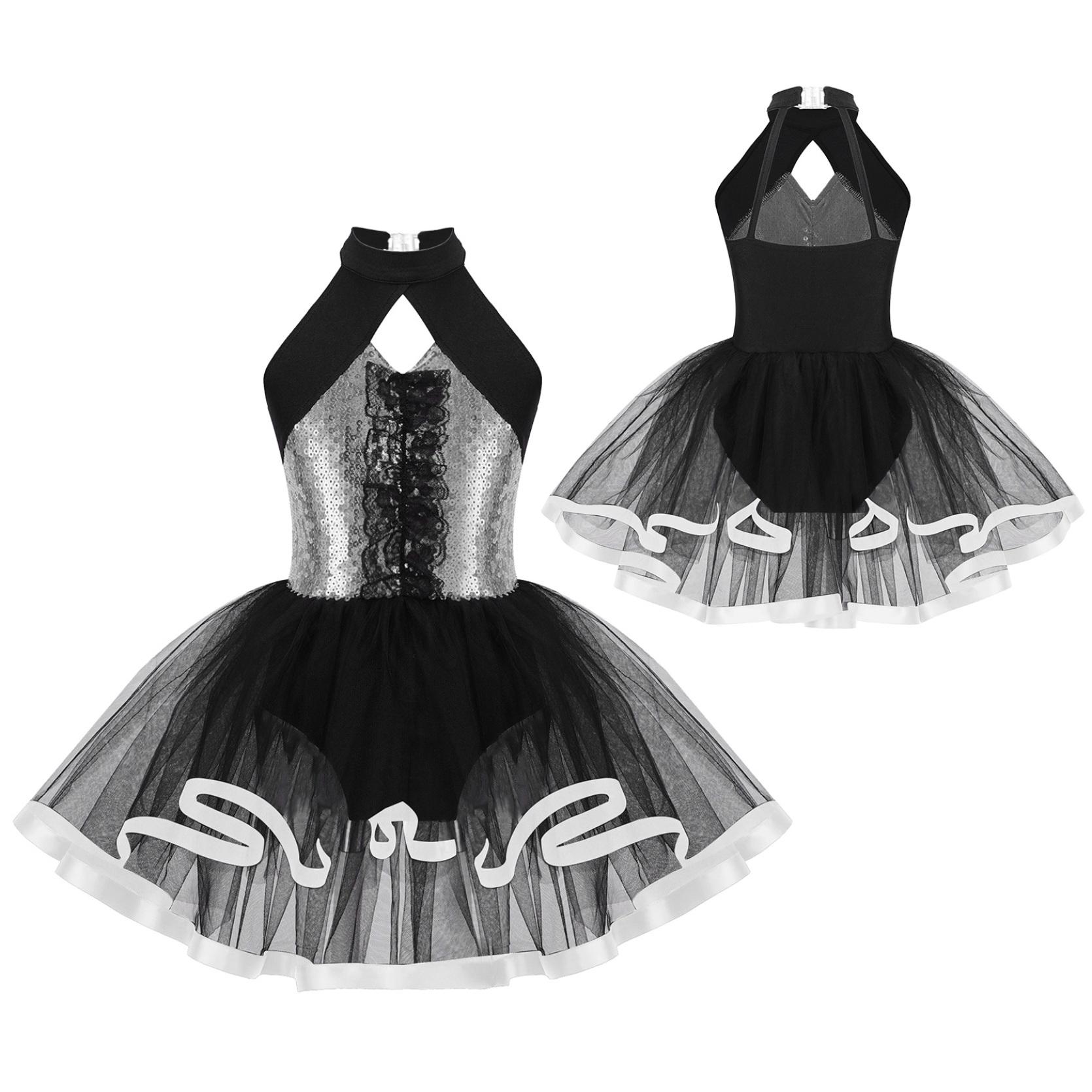 Детская стильная танцевальная одежда для девочек, сетчатое платье-пачка без рукавов с блестящими блестками и декором на бретелях, сетчатое танцевальное платье серебряный