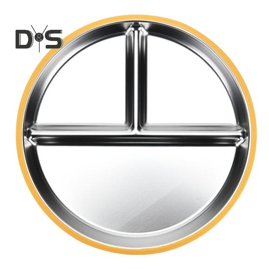 Детская тарелка с присоской, 3-секционная, разделенная на части, нержавеющая сталь, 9 дюймов, небьющиеся, противоударные металлические миски для малышей
