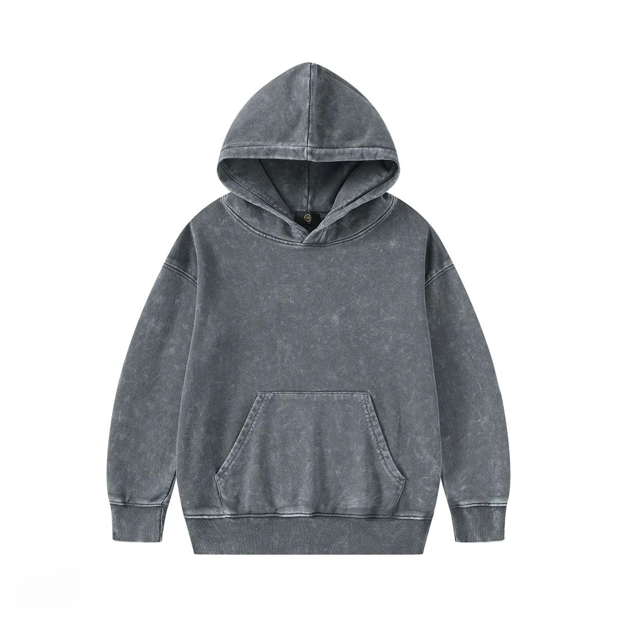 Детская уличная одежда, модные, классные, 350 г, махровый хлопок, винтажные толстовки с капюшоном на молнии для мальчиков и девочек, повседневные спортивные топы, верхняя одежда, детская одежда 160cm темно серый