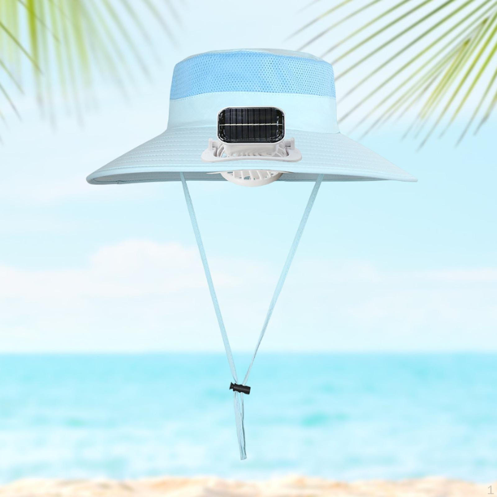 Детская уличная шляпа-веер на солнечных батареях, перезаряжаемая, многоцелевая, с широкими полями для сельского хозяйства, рыбалки синий
