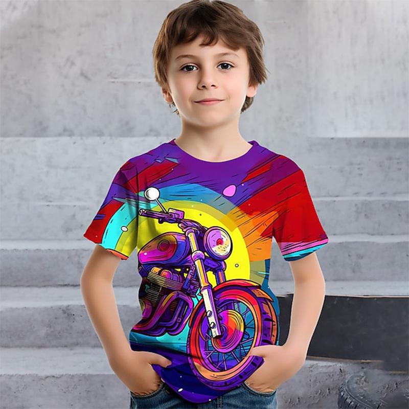 Детская/детская футболка с короткими рукавами и 3D радужным принтом автомобиля, летняя и весенняя спортивная модная футболка из полиэстера для мальчиков