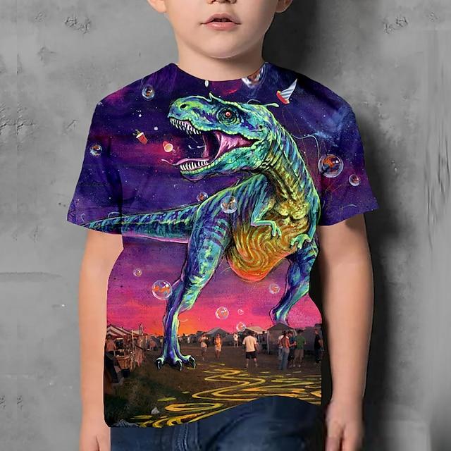Детская/детская футболка с короткими рукавами и 3D фиолетовым принтом динозавра, летняя и весенняя модная спортивная футболка из полиэстера для мальчиков