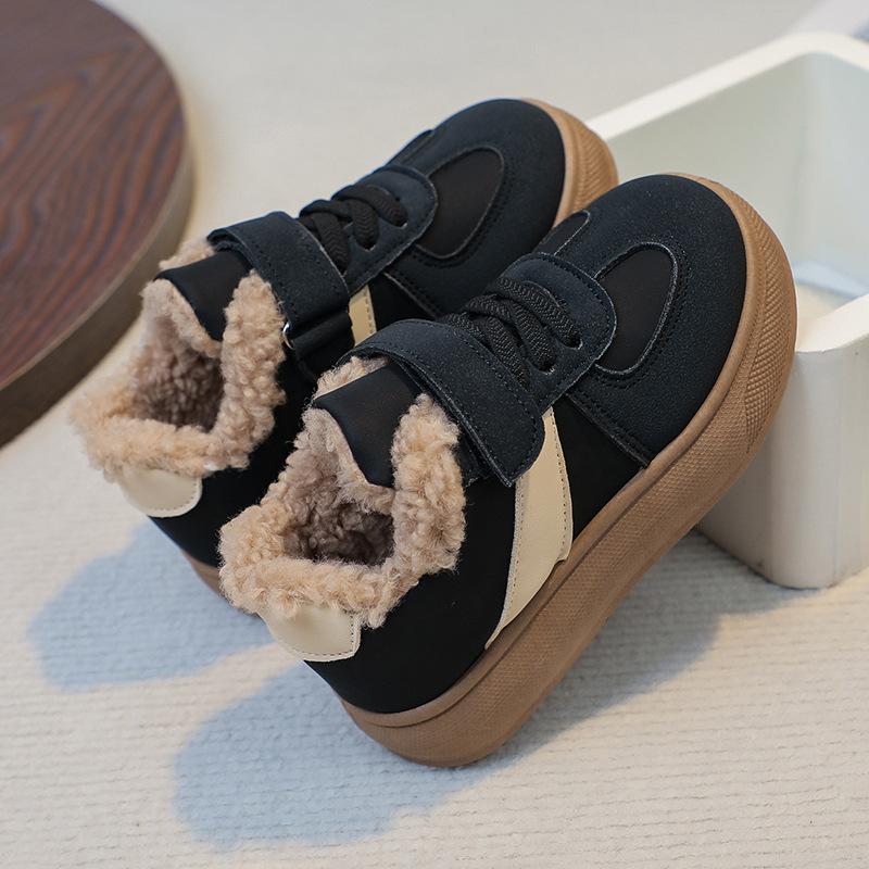Детская хлопковая обувь Осень Зима Новая Ретро Нескользящая На флисовой подкладке Теплая Обувь для девочек Мальчиковые зимние ботинки 33 чёрный