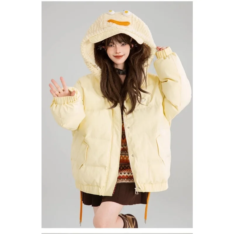 Детская хлопковая одежда, новинка 2025 года, милое пальто с капюшоном с героями мультфильмов, зимнее пальто молочно-желтого цвета для девочек, теплое утепленное пальто