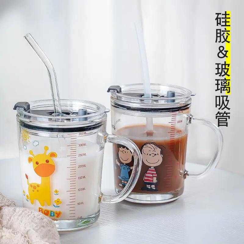 Детская чашка для питья, детская чашка для молока, завтрака, соломенная стеклянная чашка для молока, чая с чашкой для воды с прозрачной крышк...