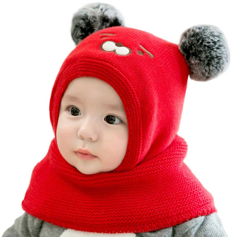 Детская шапка из шерсти в мультяшной форме, теплый однотонный нагрудник с капюшоном на 3–24 месяца Free Size красный