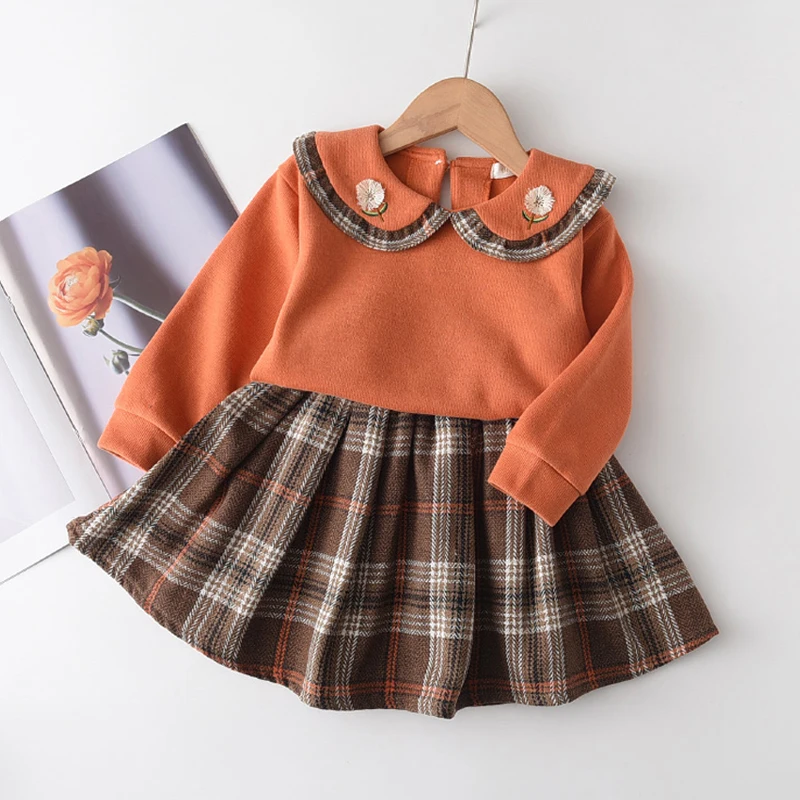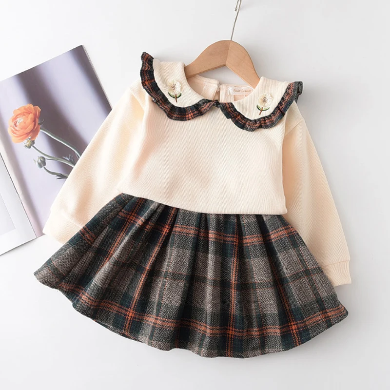 Детская шерстяная верхняя одежда, Осенняя детская юбка, небольшое стильное пальто для девочек, сетчатая юбка, комплект одежды из 2 предметов для маленьких девочек