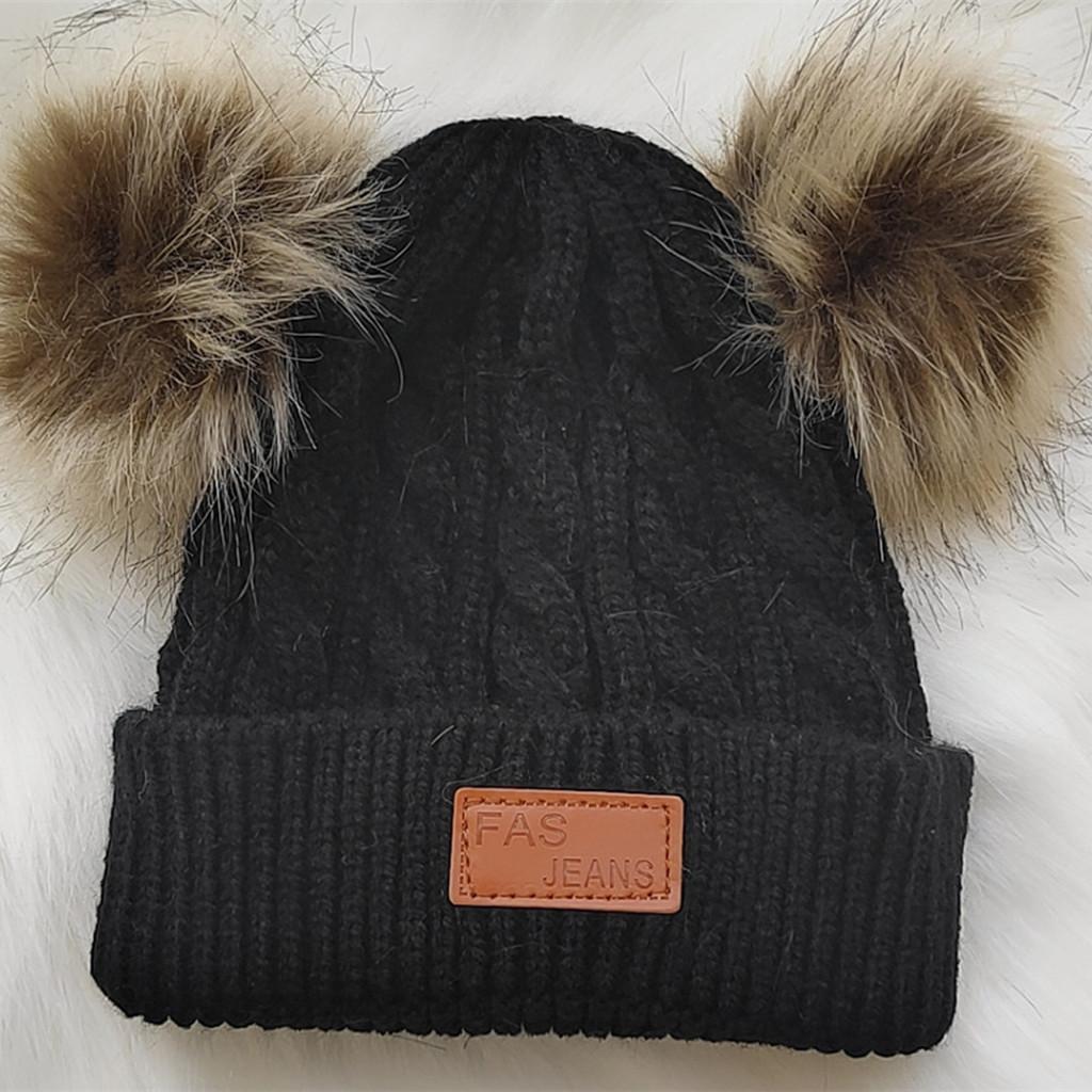 Детская шерстяная шапка с двойным шариком, шерстяной шарик, детская вязаная шапка, эластичная One Size чёрный