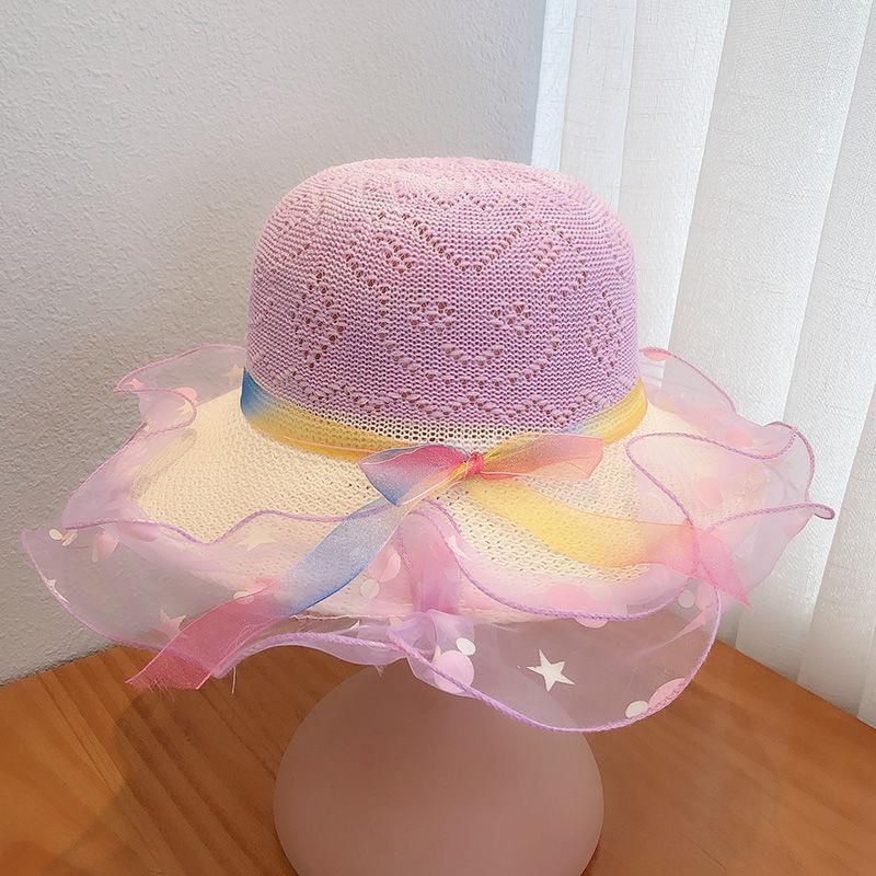 Детская шляпа Женская летняя солнцезащитная и теневая Принцесса Пляжная Дорожная Летняя Тонкая Милая Солнечная Соломенная шляпа (2-7 years old)