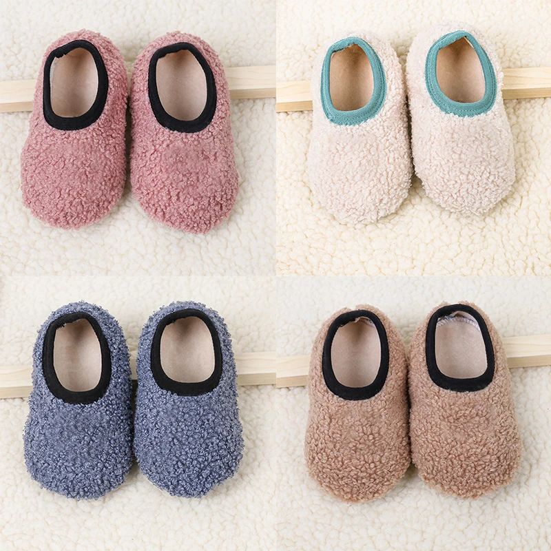 Детские Нескользящие тапочки для дома, зимние тапочки для маленьких девочек и мальчиков, теплая школьная обувь для младенцев, плюшевая мягк...