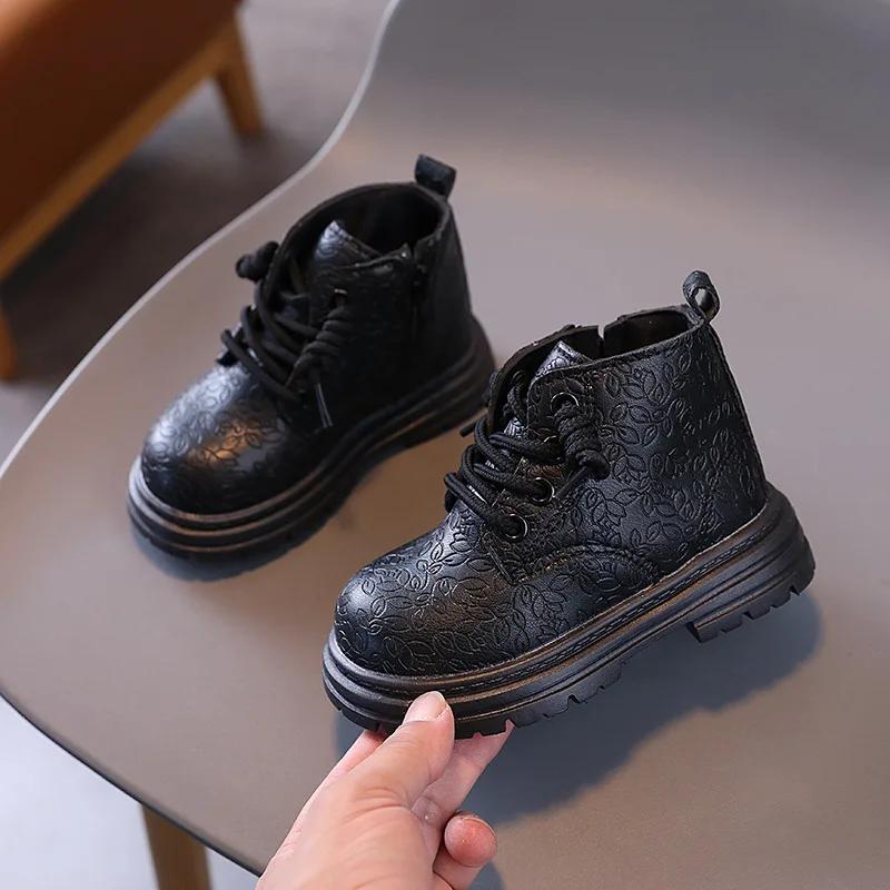 Детские ботильоны на платформе, весна-осень, толстые школьные ботинки для девочек, модные повседневные детские короткие ботинки с нескользящей молнией 21 чёрный