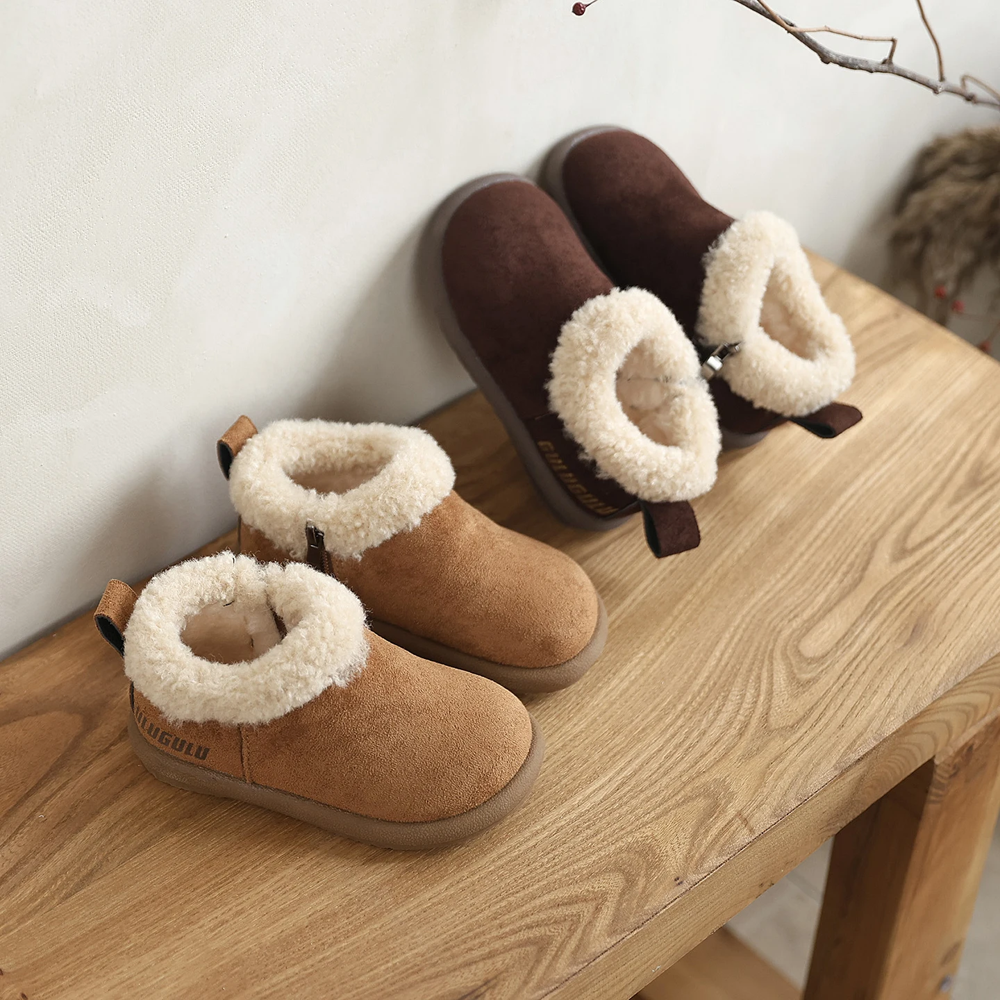 Детские ботинки, новинка 2024, зимняя пушистая теплая хлопковая обувь для малышей, модные простые стильные детские плюшевые ботинки, универсальные ботильоны