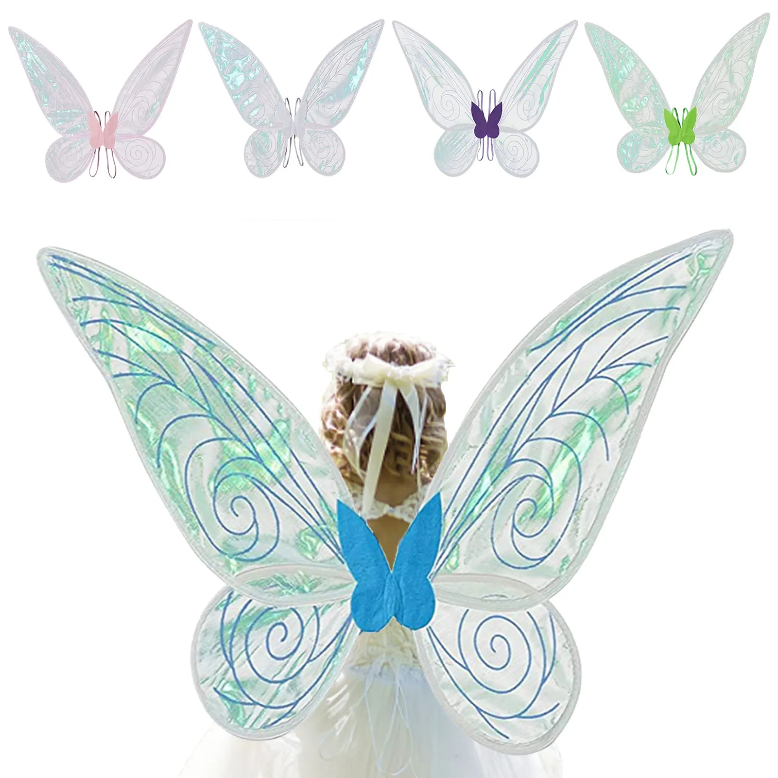 Детские волшебные крылья для девочек, крылья бабочки, корона, волшебная палочка, набор со сверкающими крыльями ангела и эльфа для принцессы,...