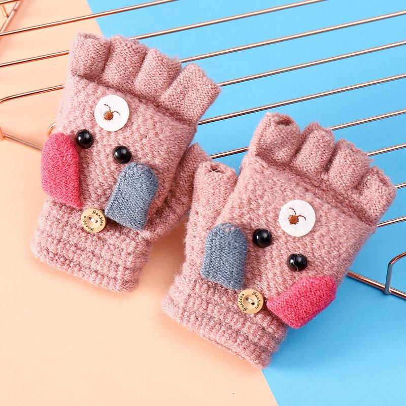 Детские вязаные перчатки с полупальцами, осенние и зимние теплые перчатки для письма учащихся с героями мультфильмов, морозостойкие и теплые перчатки для мальчиков и девочек розовый