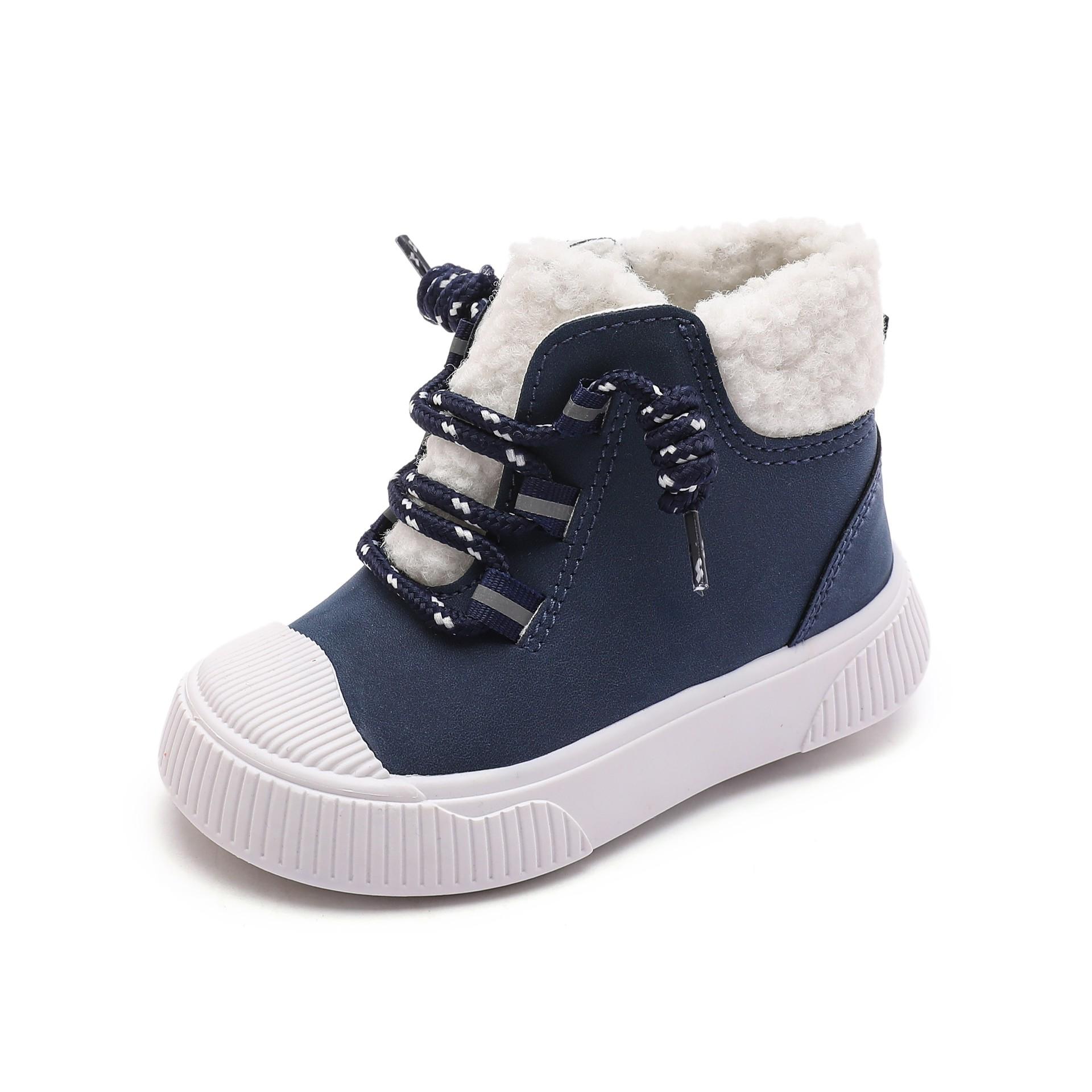 Детские зимние ботинки Осень и Зима Водонепроницаемые Повседневные Бархатные Теплые Короткие Ботинки 25 тёмно-синий
