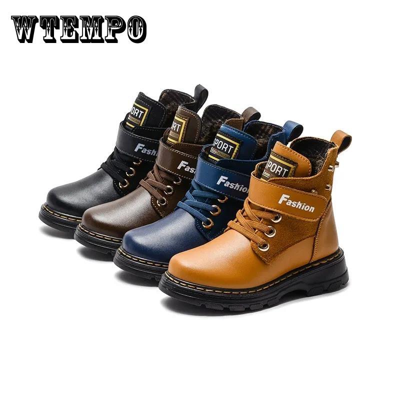 Детские зимние ботинки на толстой подошве, повседневная хлопковая обувь для мальчиков, зимние теплые кожаные ботинки, ботинки Мартина для папы и сына больших размеров