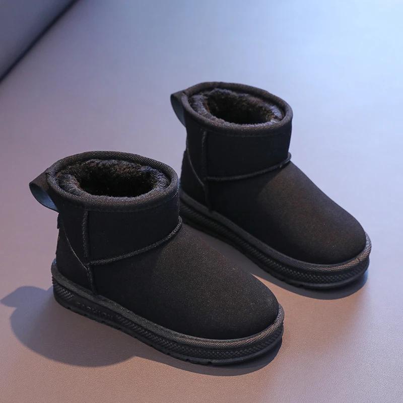 Детские зимние ботинки с мехом внутри для мальчиков и девочек, теплые ботинки, нескользящая мягкая подошва, 2024 новая модная детская короткая обувь, тренд однотонного цвета 26 чёрный