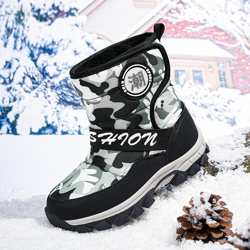 Детские зимние ботинки 2025 новые железные когти нескользящие теплые большой хлопок утолщенные ботинки из большого хлопка камуфляжные водонепроницаемые ботинки 40