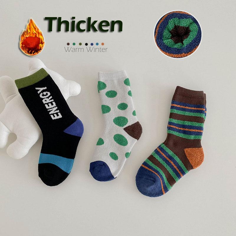 Детские зимние носки, утепленные хлопковые носки для девочек, теплые уютные полосатые носки, детские носки средней длины, 3 пары (необычная упаковка)