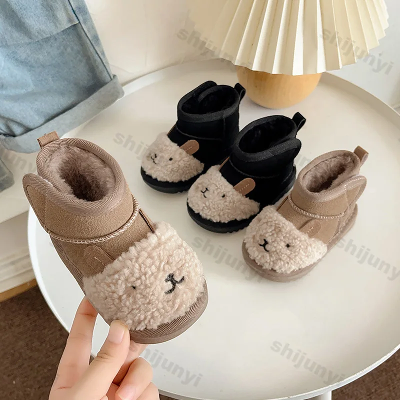 Детские зимние сапоги 2025 года, новые зимние теплые плюшевые милые детские ботильоны с мультяшными животными, модная хлопковая обувь на мягкой подошве для маленьких девочек и мальчиков