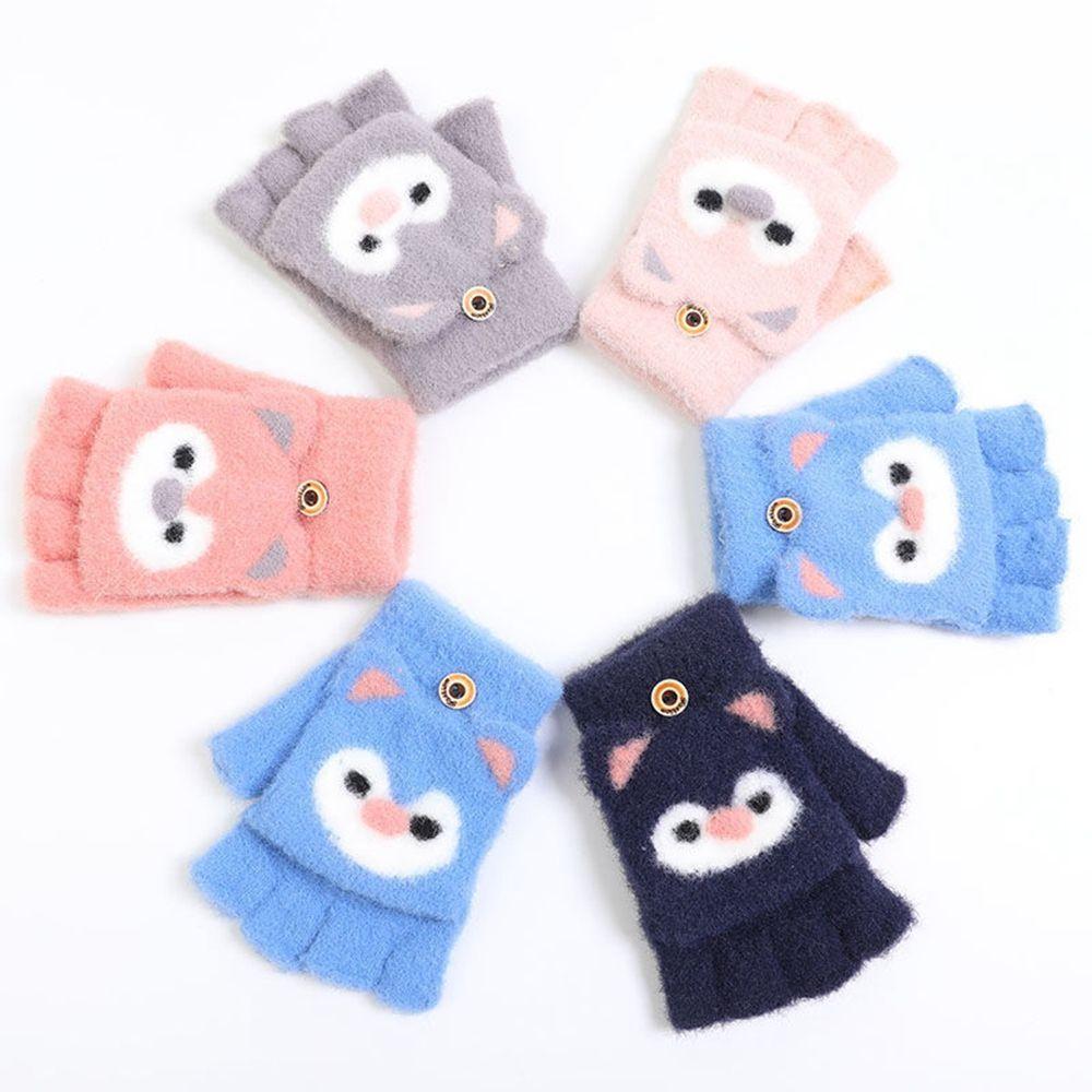 Детские корейские вязаные варежки в форме кошачьих ушей, детские перчатки, перчатки с откидной крышкой, перчатки с половиной пальца