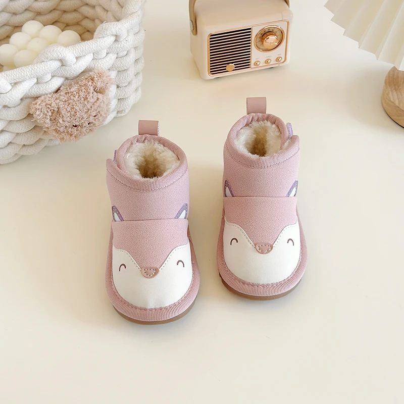 Детские короткие сапоги с милыми животными, детская прогулочная обувь на теплом меху, зима 2024, новая мода, зимние сапоги для малышей, мягкая подошва на липучке