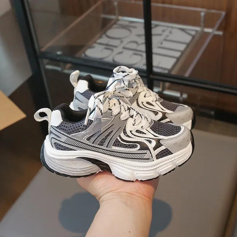 Детские кроссовки весна осень массивные школьные баскетбольные туфли для девочек модные дышащие детские туфли для мальчиков универсальные нескользящие 26 серый