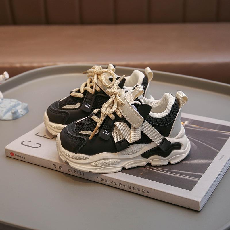 Детские кроссовки 2025 весенне-осеннего сезона новые кроссовки папы для девочек, детская обувь с мягкой подошвой для мальчиков, дышащая сетчатая обувь 25 чёрный