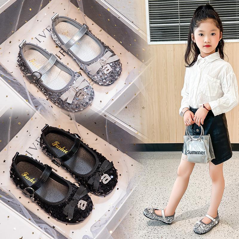 Детские маленькие кожаные туфли, весенние студенческие модные туфли с бантом для девочек и детей старшего возраста, мягкие туфли принцессы на мягкой подошве Tide 26 серебряный