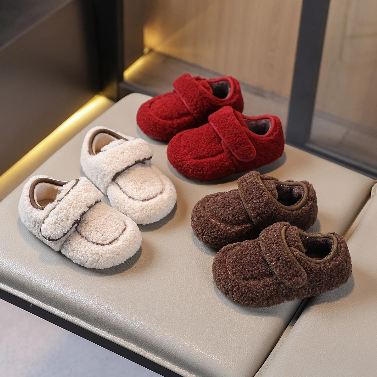 Детские меховые туфли больших размеров на плоской подошве, пушистые мокасины из овечьей шерсти, теплая хлопковая обувь для девочек, детские лоферы без шнуровки на подкладке из овечьего меха, зима 2023 г.
