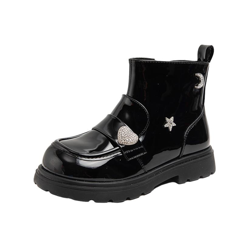 Детские модные ботинки для девочек, черные ботильоны, элегантные, толстые, теплые, плюшевые, меховые, детские, короткие, из искусственной кожи, с боковой молнией, зимние, новые 33 чёрный