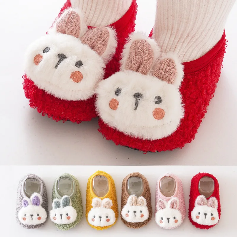 Детские носки-тапочки с героями мультфильмов, плюшевые детские тапочки на мягкой подошве, теплая обувь для малышей, детские мягкие нескользящие домашние тапочки для прогулок