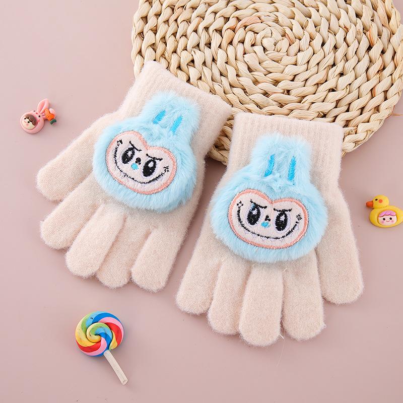 Детские перчатки зимние милые мультяшные мальчики и девочки теплые и холодостойкие пятипалые вязаные перчатки из норки для учеников начальной школы 5-10 лет S бежевый