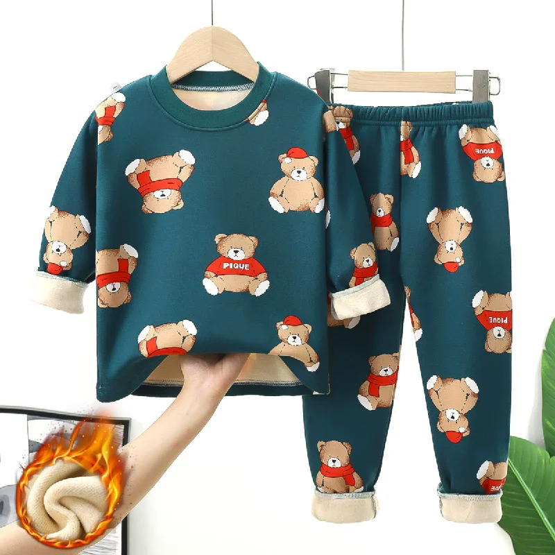 Детские пижамные комплекты из флисовой линии, осенне-зимние бархатные теплые костюмы, пуловер с принтом для мальчиков и девочек + штаны, комплект из 2 предметов, От 1 до 14 лет