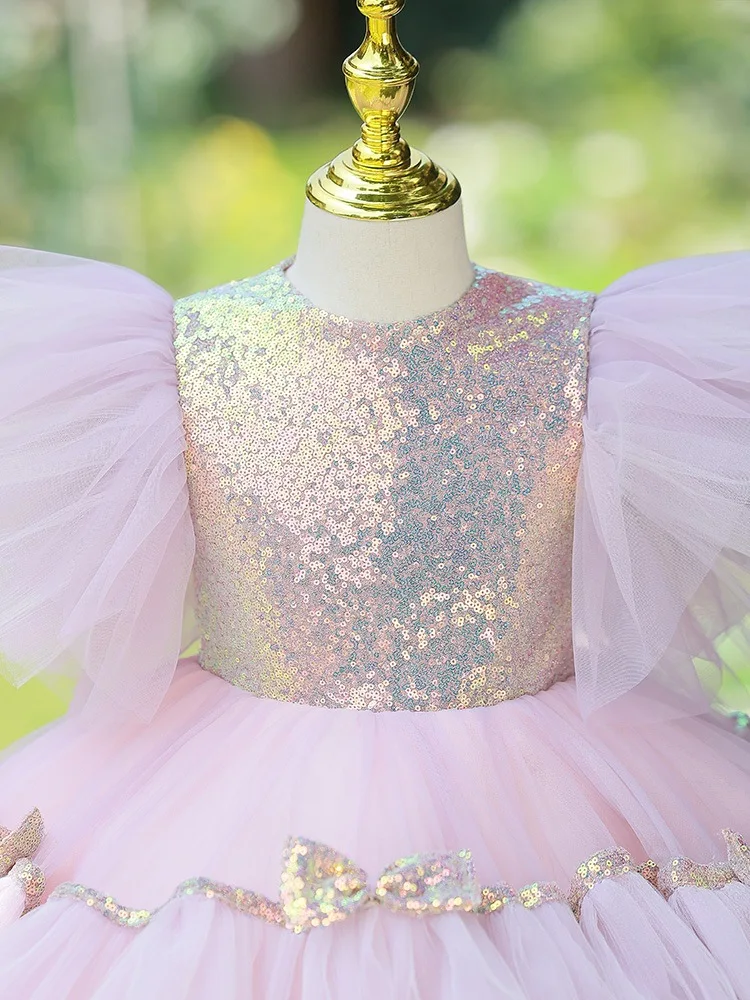 Детские платья, модное платье-пачка с цветочным принтом для маленьких принцесс, платье с золотыми блестками и бантом для маленьких девочек на день рождения, детское платье для девочек