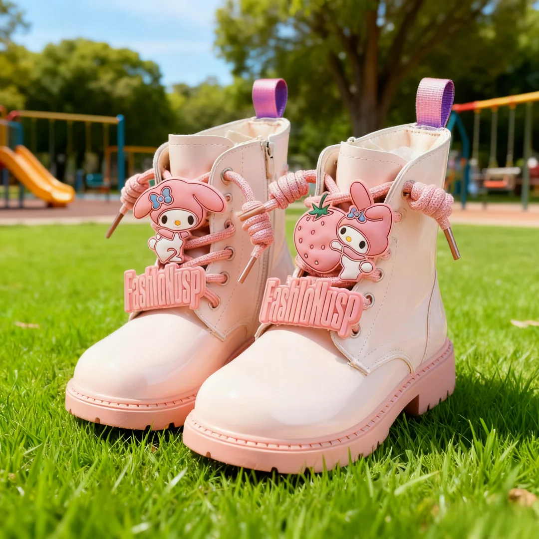 Детские повседневные ботильоны из искусственной кожи, зимняя обувь с героями мультфильмов для девочек, нескользящая теплая белая черная обувь на толстой подошве, размер 28-37