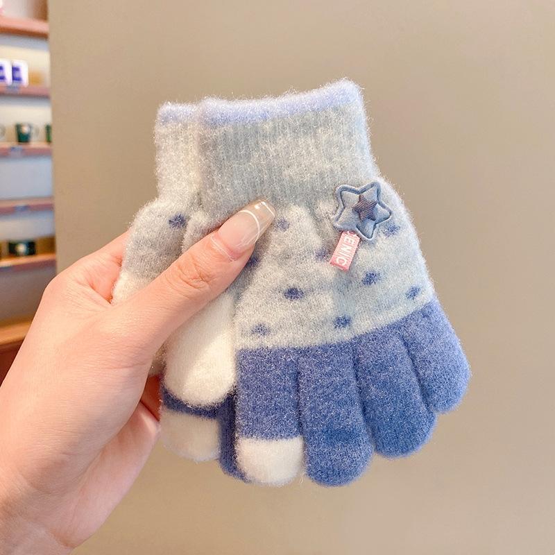 Детские пятипалые перчатки Зимой Тепло Плюс Бархатное Утолщение Милые Зимние Ветрозащитные Детские С Полным Пальцем Для Девочки Раздельный Палец небесно-голубой
