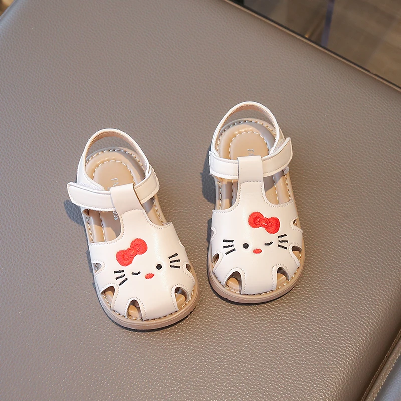Детские сандалии, новые летние бежевые перфорированные туфли с героями мультфильмов для мальчиков и девочек от 1 до 6 лет, нескользящая детская прогулочная обувь на мягкой подошве