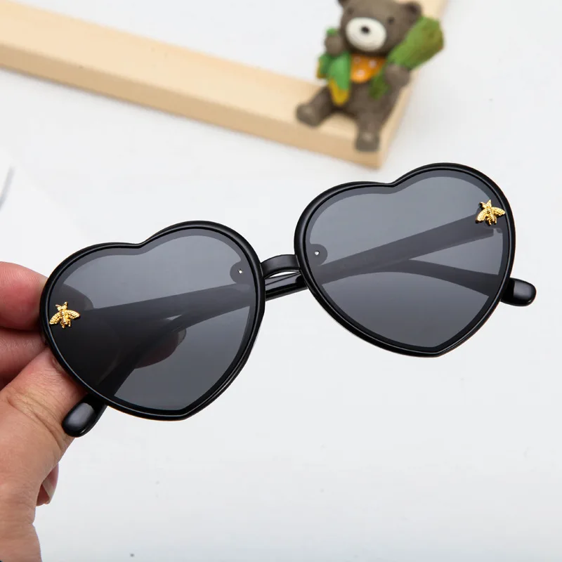 Детские солнцезащитные очки в форме сердца, милые Мультяшные розовые солнцезащитные очки в ретро стиле с Пчелкой, очки в оправе для девочек ...