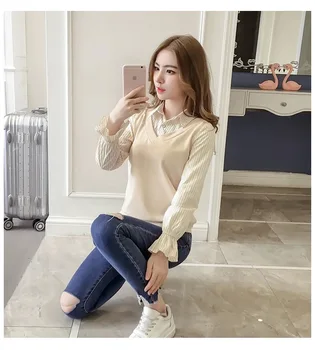 Деловой шикарный комплект из трех предметов, зимние дизайнерские модные черные вязаные пуловеры + жилет на бретельках с юбкой, милая офисна...