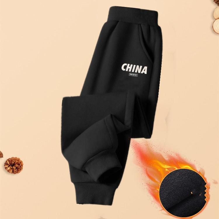 Детские спортивные штаны из утолщенного флиса, однотонные, детские спортивные штаны, зимние спортивные штаны для девочек в западном стиле, штаны для больших детей, для мальчиков 90 чёрный