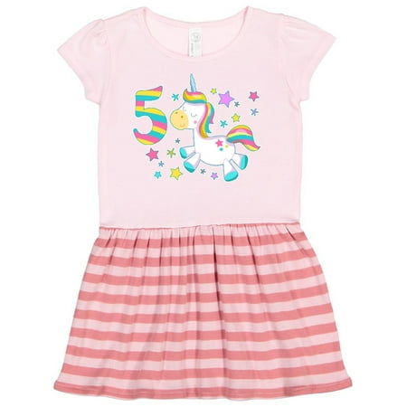 Inktastic Fifth Birthday Rainbow Unicorn Plush and Stars Gift Toddler Girl Dress