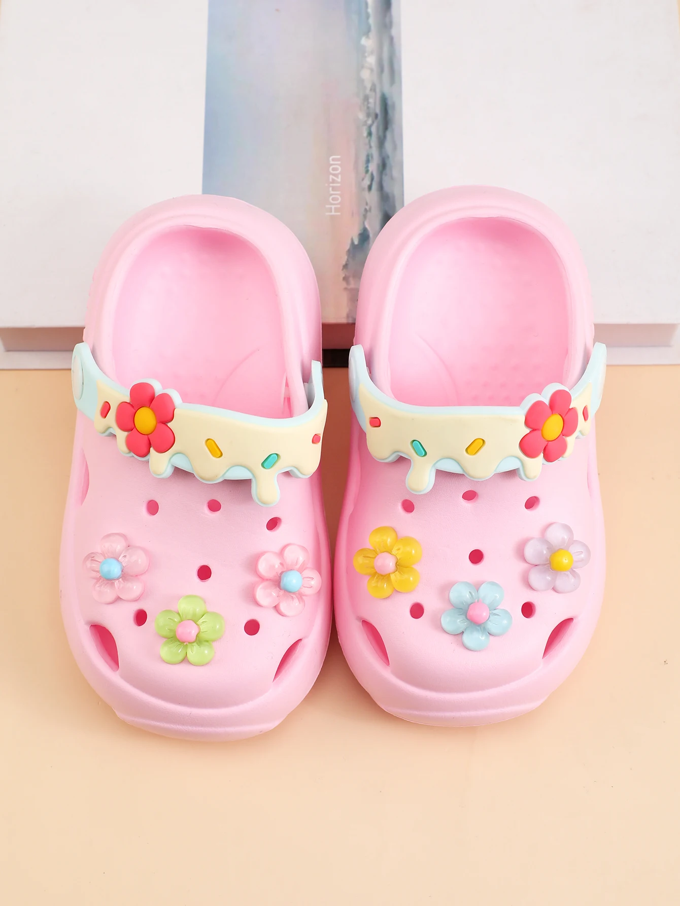 Детские тапочки, модные милые сандалии с цветочным узором для девочек, дышащие нескользящие домашние и уличные садовые пляжные тапочки для спорта на открытом воздухе