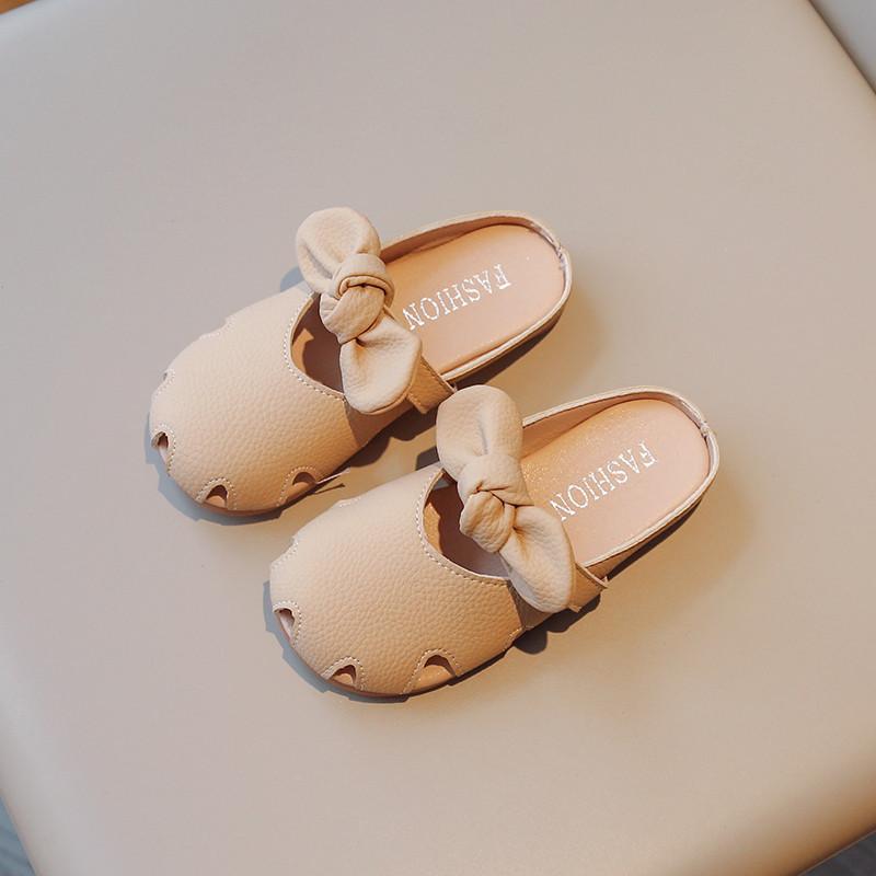 Детские тапочки с закрытыми носками, тапочки для девочек, полые тапочки принцессы с бантом, модные детские полусандалии, на плоской подошве, простые, дышащие 26 хаки