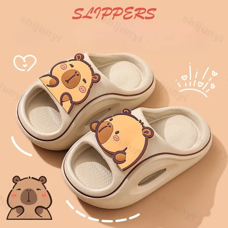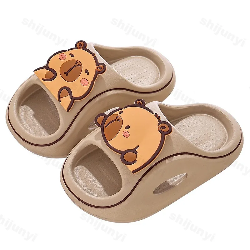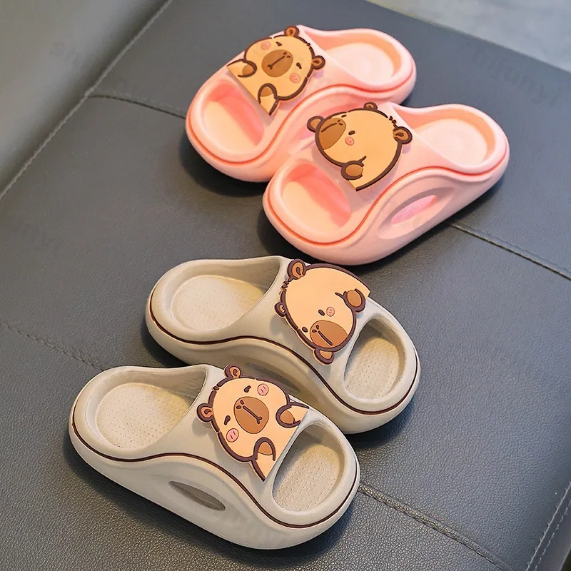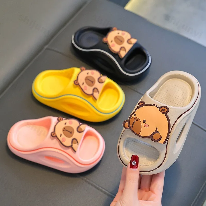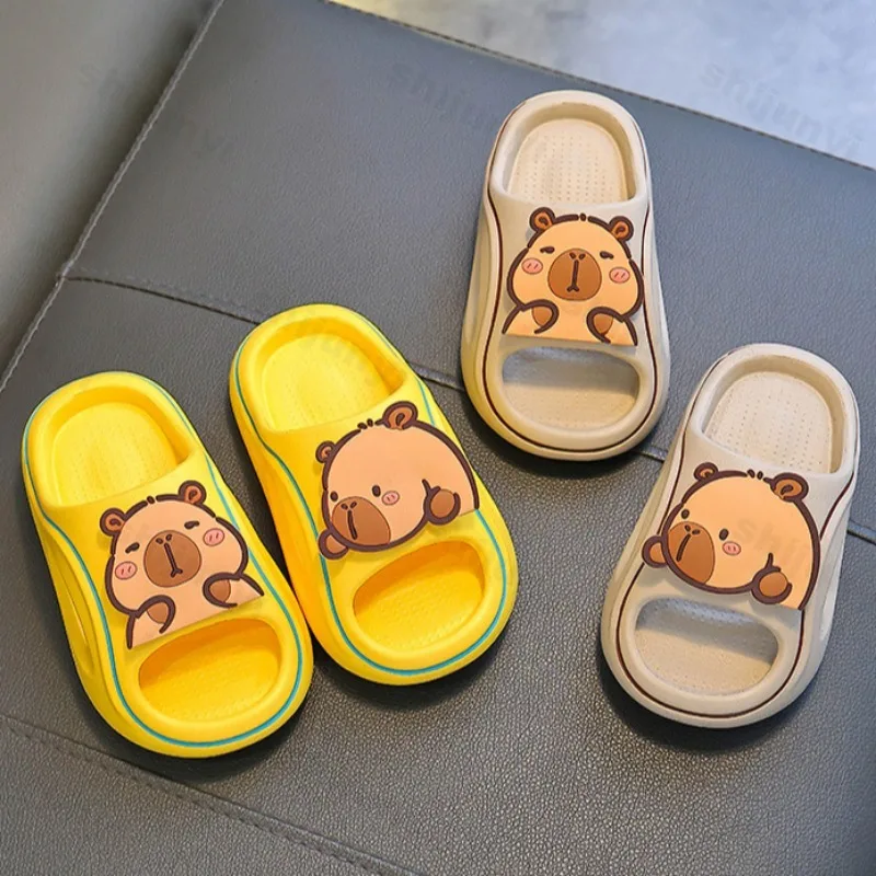 Детские тапочки Capybara, милые пляжные сандалии с героями мультфильмов, лето 2024, уличная удобная нескользящая детская домашняя обувь на платформе для ванной комнаты