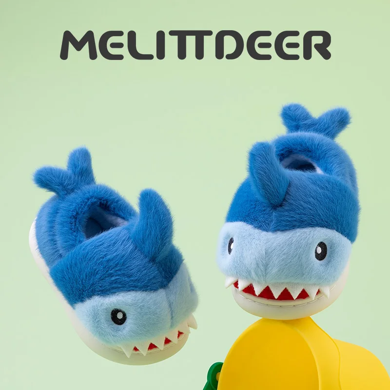 Детские тапочки MELITTDEER для мальчиков, новая зимняя коллекция 2025 года, уютная и теплая домашняя и уличная обувь с рисунком акулы из мультфильма