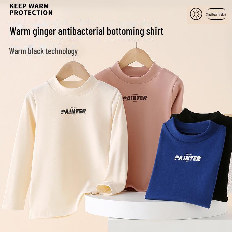 Детские теплые топы с антибактериальным эффектом Ginger 7A: Осенняя верхняя и нижняя одежда, полувысокий воротник для мальчиков и девочек 140 чёрный