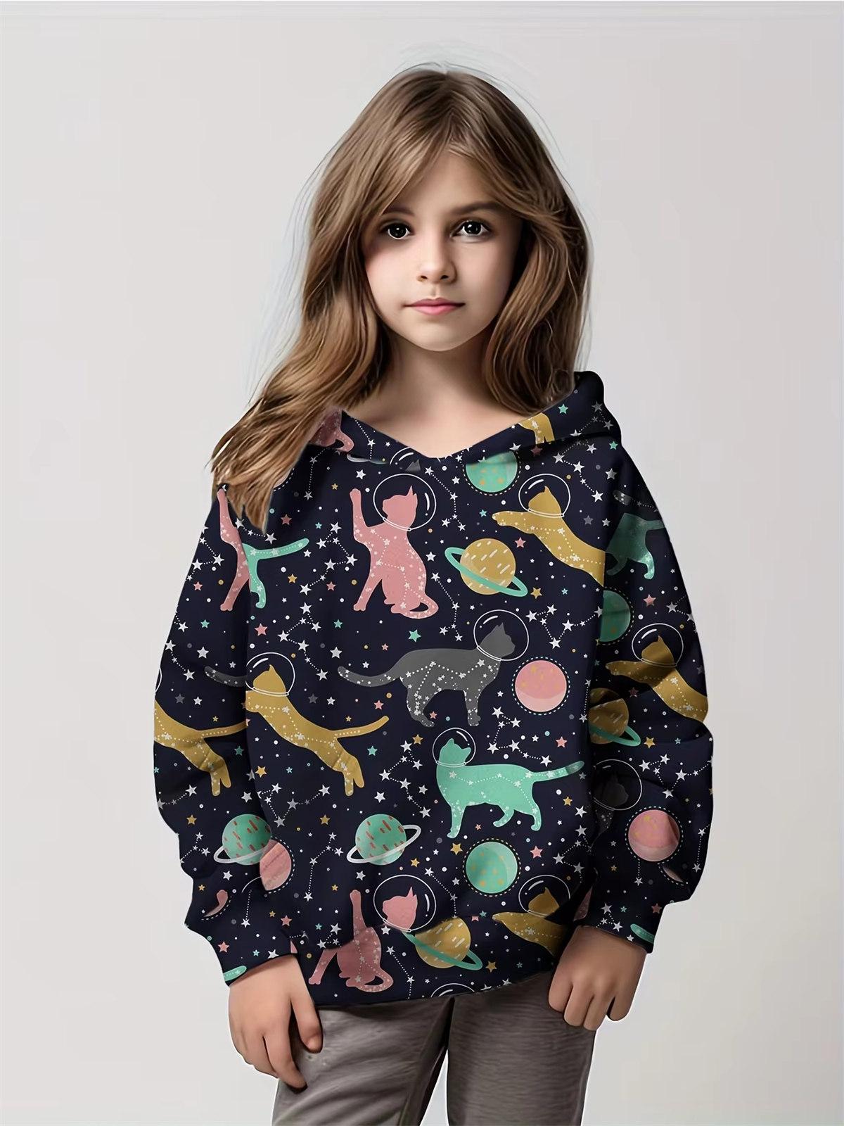 Детские толстовки с капюшоном для девочек-подростков с рисунком мультяшных кошек, удобная универсальная толстовка с капюшоном, верхняя часть, осенне-зимняя одежда для детей 160