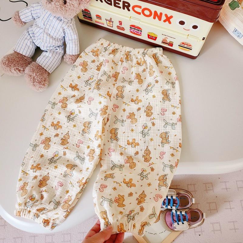 Детские хлопковые брюки от комаров - Летний мультяшный стиль, корейская двухслойная марля для мальчиков и девочек 130 cm